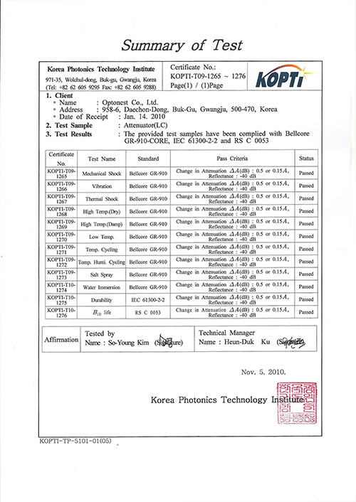 인증 | GR 910 test (광감쇠기)